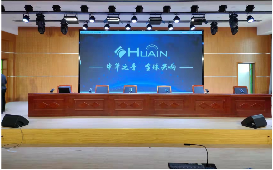 湖北省某實(shí)驗(yàn)中學(xué)使用HUAIN華音會(huì)議系統(tǒng)升級(jí)報(bào)告廳,為呈現(xiàn)高保真音質(zhì),使報(bào)告廳從演講臺(tái)到觀眾席擴(kuò)聲聲音清晰,聲場(chǎng)均勻,經(jīng)過(guò)工作人員現(xiàn)場(chǎng)勘察,最終選定雙振膜觸控式會(huì)議單元HY-6320系列作為發(fā)言使用。