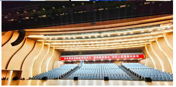 藝術(shù)中心演藝廳可容納1200位師生,具備承載各類文藝演出、會議、學(xué)術(shù)報告等多功能使用需求。校方對場內(nèi)聽音區(qū)的聲壓級均勻度有很高的要求,要求為藝術(shù)中心演藝廳提供一套現(xiàn)代化高標(biāo)準(zhǔn)的擴聲系統(tǒng),具備聲壓級大,有較高語言清晰度,保證音色的一致性。