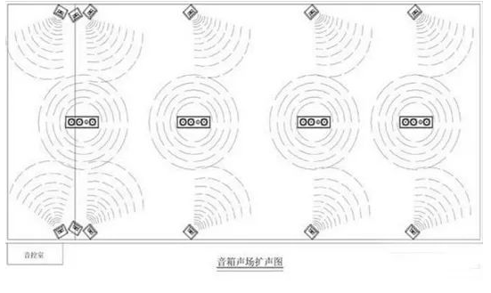 一般說來,狹長廳堂的擴聲,一定要音箱的擴聲區(qū)域盡量沿長邊展開;空間較高的擴聲場合,要盡量將音箱位置抬高,最好是略微向后場傾斜;如果是在空間和面積都較大的地方進行擴聲,就應(yīng)該考慮將音箱集中懸掛成圓弧形形成均勻的聲音擴散。