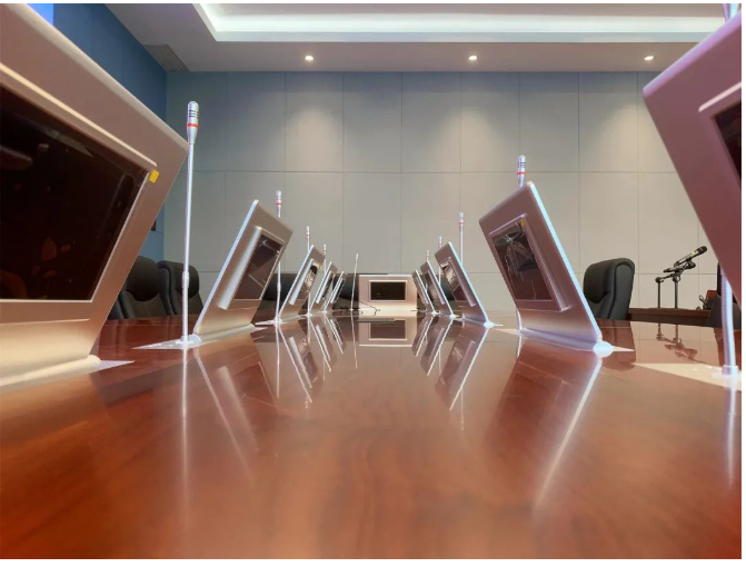 其發(fā)言話筒可以是鵝頸升降式話筒(有的可拔插)、頁面話筒、可個人收藏式手持式話筒、內(nèi)藏式話筒等。