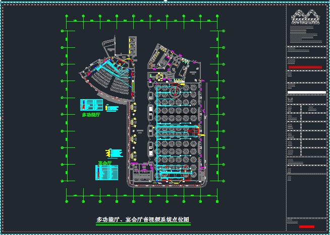 在音頻處理系統(tǒng)方面,采用了BSS PDP-DSP數(shù)字音頻處理器,該通過(guò)CobraNet網(wǎng)絡(luò)可將音頻信號(hào)傳輸?shù)礁鲄^(qū)域的音頻處理器并分配給Crown CT系列多通道功放進(jìn)行播放;每區(qū)域也分別配置了BSS BLU系列控制面板以保證操作人員可在本地對(duì)音量進(jìn)行遠(yuǎn)程控制。而中央控制系統(tǒng)則使用AMX NX-3200中央控制主機(jī)及iPad無(wú)線觸控屏,用于對(duì)所有的音視頻設(shè)備進(jìn)行遠(yuǎn)程控制。