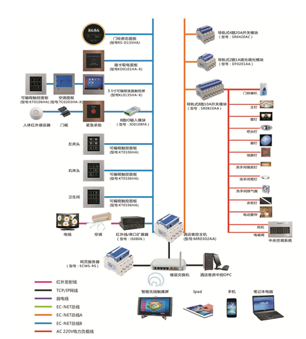 基本功能:照明開關(guān)、電動(dòng)窗簾開合、插座控制、空調(diào)本地控制、空調(diào)聯(lián)網(wǎng)控制、背景音樂控制、模式控制、房態(tài)監(jiān)視。