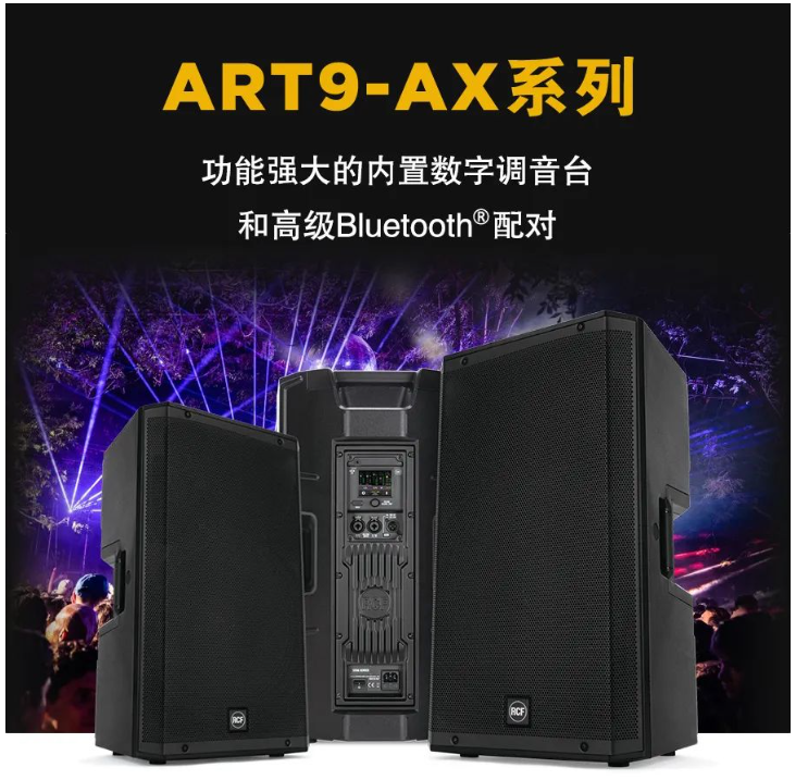 RCF最新推出了全新的ART9-AX系列,ART9-AX是一款具有48V麥克風(fēng)前置放大器和線路輸入、內(nèi)置6通道數(shù)字調(diào)音臺和高級DSP、Bluetooth®(藍牙)流媒體和控制功能的兩分頻揚聲器。適用于任何音頻應(yīng)用的頂級解決方案。